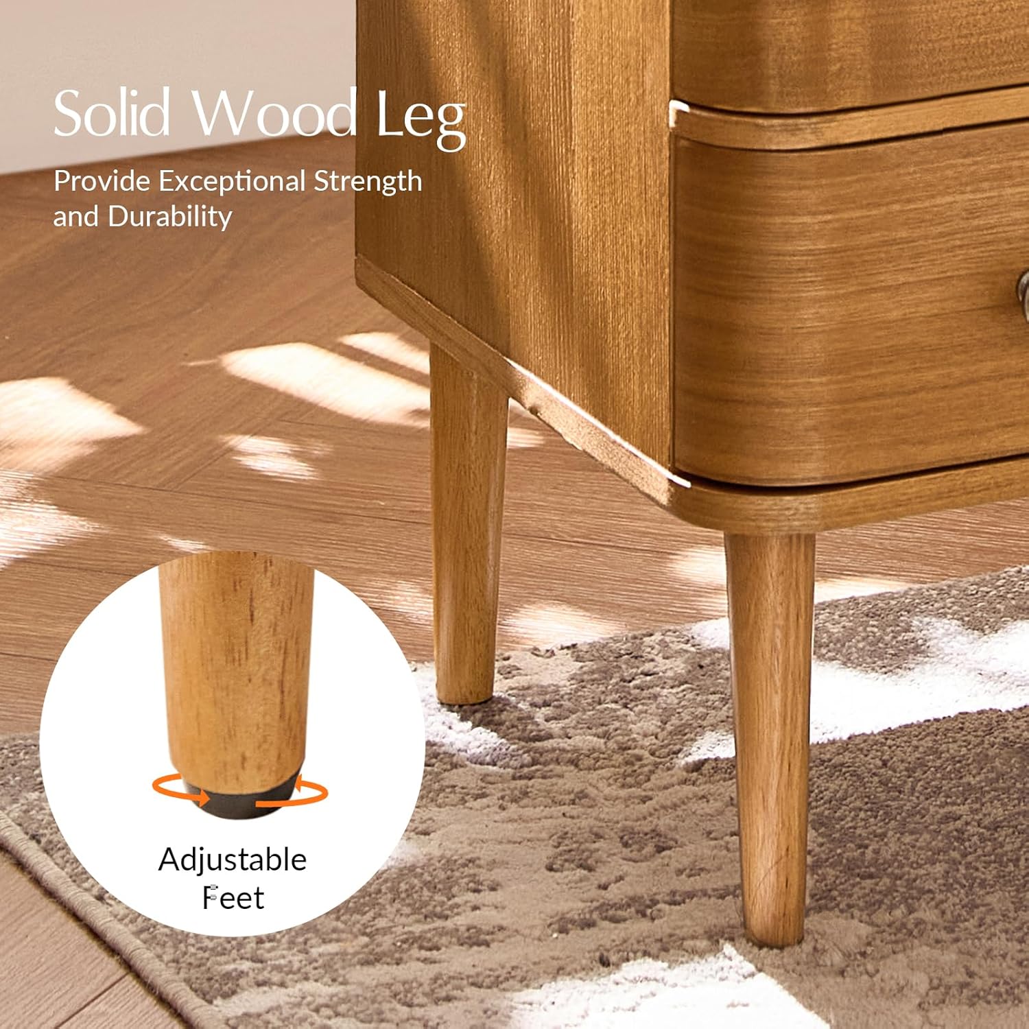 Elegant Curved Design: Smoothly curved cabinet body paired with solid wood legs adds both sophistication and durability to your bedroom or living space.