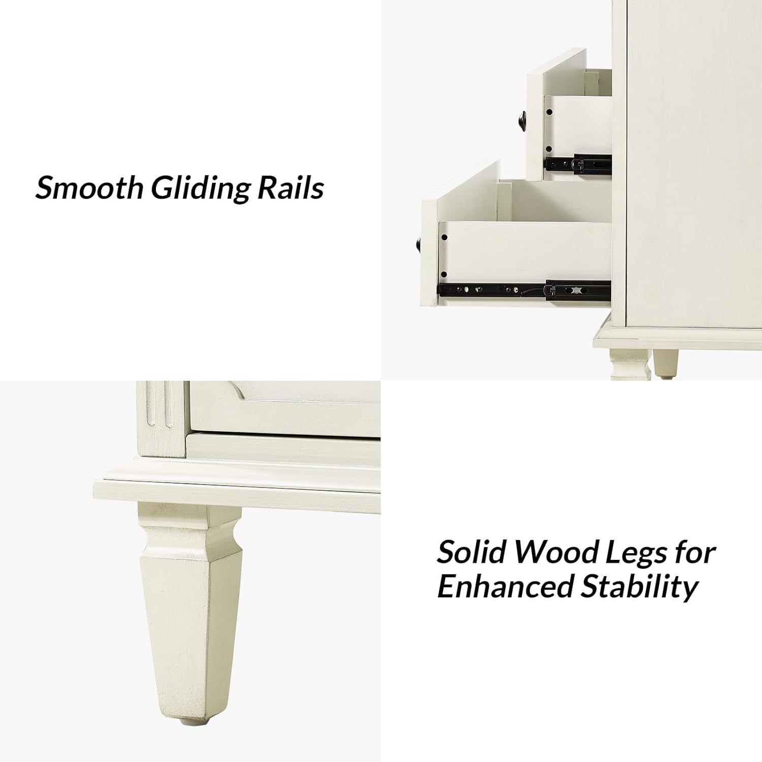 Farmhouse Nightstand Set of 2 with Charging Station – 2-Drawer Bedside Tables with Open Shelf, White Finish