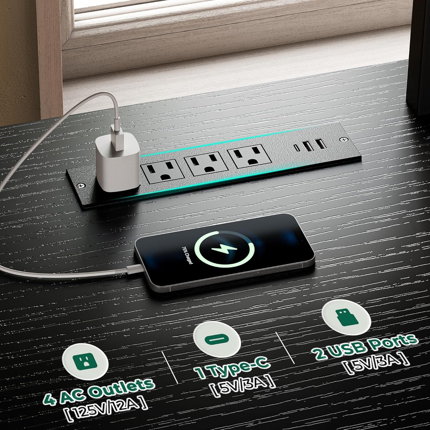Built-In Power Outlets: Includes 4 standard plug outlets, 2 USB ports, and 1 Type-C port for convenient charging of all your devices, from consoles to speakers.