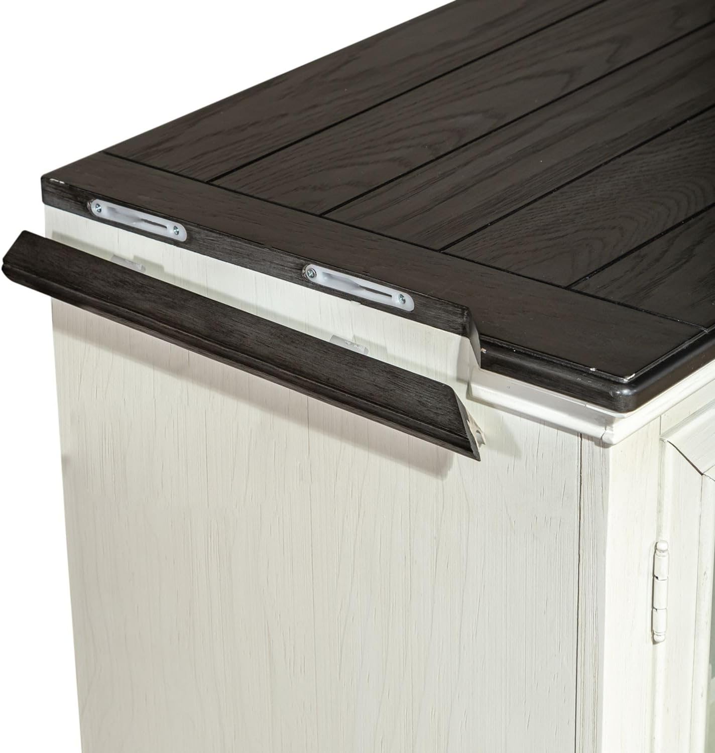 Bring a blend of timeless design and functional storage to your living space with this 72-inch TV stand. Crafted from solid wood with oak veneer tops, it features a wire-brushed white finish accented by charcoal tops, antique-inspired hardware, and beveled glass doors that allow remote signals to pass through seamlessly. Perfect for TVs up to 80 inches, this versatile console can be used as a standalone piece or combined with other furniture to complete your media setup.